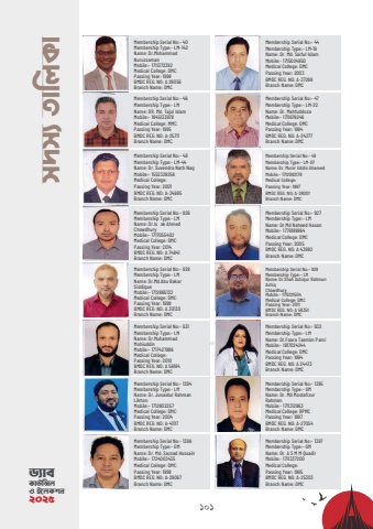 101m`m%u00a8 ZvwjKvMembership Serial No:- 44Membership Type:- LM-19Name: Dr. Md. Saiful IslamMobile:- 1715024950Medical College: DMCPassing Year: 2003BMDC REG. NO: A-37299Branch Name: DMCMembership Serial No:- 40Membership Type:- LM-142Name: Dr.Mohammad NuruzzamanMobile:- 1711372392Medical College: DMCPassing Year: 1998BMDC REG. NO: A 28056Branch Name: DMCMembership Serial No:- 47Membership Type:- LM-22Name: Dr. MahfuddozaMobile:- 1711676246Medical College: DMCPassing Year: 1994BMDC REG. NO: A-24277Branch Name: DMCMembership Serial No:- 46Membership Type:- LMName: DR. Md. Tajul Islam Mobile:- 1845133978Medical College: MMCPassing Year: 1995BMDC REG. NO: A-25711Branch Name: DMCMembership Serial No:- 49Membership Type:- LM-07Name: Dr. Monir Uddin AhamedMobile:- 1712092178Medical College: Passing Year: 1997BMDC REG. NO: A-28001Branch Name: DMCMembership Serial No:- 48Membership Type:- LM-44Name: Dr. Suvendra Nath Nag Mobile:- 1552329256Medical College: Passing Year: 2001BMDC REG. NO: A-34685Branch Name: DMCMembership Serial No:- 927Membership Type:- LMName: Dr.Md Naheed HasanMobile:- 1776199864Medical College: DMCPassing Year: 2005BMDC REG. NO: A 43882Branch Name: DMCMembership Serial No:- 926Membership Type:- LMName: Dr.Isak Ahmed ChowdhuryMobile:- 1717055402Medical College: DMCPassing Year: 2014BMDC REG. NO: A 74841Branch Name: DMCMembership Serial No:- 929Membership Type:- LMName: Dr.Shah Ashiqur Rahman Ashiq ChowdhuryMobile:- 1715121504Medical College: DMCPassing Year: 2011BMDC REG. NO: A 58351Branch Name: DMCMembership Serial No:- 928Membership Type:- LMName: Dr.Md.Abu Bakar SiddiqueMobile:- 1712865132Medical College: DMCPassing Year: 1999BMDC REG. NO: A 30130Branch Name: DMCMembership Serial No:- 932Membership Type:- LMName: Dr.Foara Tasmim PamiMobile:- 1817024244Medical College: DMCPassing Year: 1994BMDC REG. NO: A 24473Branch Name: DMCMembership Serial No:- 931Membership Type:- LMName: Dr.Muhammad MohiuddinMobile:- 1717427986Medical College: Passing Year: 2010BMDC REG. NO: A 56184Branch Name: DMCMembership Serial No:- 1395Membership Type:- GMName: Dr. Md Mostafizur RahmanMobile:- 1711312963Medical College: RPMCPassing Year: 1997BMDC REG. NO: A-27054Branch Name: DMCMembership Serial No:- 1394Membership Type:- LMName: Dr. Junaidur Rahman LikhonMobile:- 1712602257Medical College: DMCPassing Year: 2004BMDC REG. NO: A-41117Branch Name: DMCMembership Serial No:- 1397Membership Type:- GMName: Dr. A S M M QuadirMobile:- 1711337200Medical College: Passing Year: 1995BMDC REG. NO: A-25303Branch Name: DMCMembership Serial No:- 1396Membership Type:- GMName: Dr. Md. Sazzad HossainMobile:- 1724003435Medical College: DMCPassing Year: 1998BMDC REG. NO: A-29067Branch Name: DMCW%u00a8veKvDw%u00ddj I B%u2021jKkb 2025