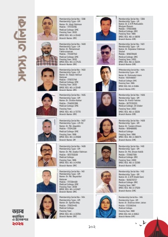 102m`m%u00a8 ZvwjKvMembership Serial No:- 1399Membership Type:- LMName: Dr. A K M Mohiuddin Bhuiyan MasumMobile:- 1711822986Medical College: DMCPassing Year: 1996BMDC REG. NO: A-26018Branch Name: DMCMembership Serial No:- 1398Membership Type:- GMName: Dr. Abujr Rahman Mobile:- 1711730765Medical College: DMCPassing Year: 2002BMDC REG. NO: A-35451Branch Name: DMCMembership Serial No:- 1401Membership Type:- LMName: Dr. Rejwanur Rahman ShohelMobile:- 1819079480Medical College: DMCPassing Year: 2002BMDC REG. NO: A-35224Branch Name: DMCMembership Serial No:- 1400Membership Type:- LMName: Dr. Mohammad FakhruzzamanMobile:- 1712287140Medical College: DMCPassing Year: 2002BMDC REG. NO: A-37435Branch Name: DMCMMembership Serial No:- 1404Membership Type:- GMName: Dr. Mahmudul IslamMobile:- 1822496267Medical College: DMCPassing Year: 1995BMDC REG. NO: A-24964Branch Name: DMCMembership Serial No:- 1402Membership Type:- LMName: Dr. Hasan Hafizur RahmanMobile:- 1711072748Medical College: DMCPassing Year: 2002BMDC REG. NO: A-35481Branch Name: DMCMembership Serial No:- 1406Membership Type:- GMName: Dr. Kaniz FatimaMobile:- 1677232030Medical College: ZH SikderPassing Year: 2002BMDC REG. NO: A-35519Branch Name: DMCMembership Serial No:- 1405Membership Type:- GMName: Dr. Siratun Nahar Mobile:- 1746302389Medical College: DMCPassing Year: BMDC REG. NO: A-72770Branch Name: DMCMembership Serial No:- 1408Membership Type:- GMName: Dr. Tazeen Afreen Mobile:- 1819489885Medical College: Passing Year: 1996BMDC REG. NO: A-260274Branch Name: DMCMembership Serial No:- 1407Membership Type:- LM-112Name: Dr. Md. Alauddin Mobile:- 1712143291Medical College: DMCPassing Year: 1999BMDC REG. NO: A-29598Branch Name: DMMembership Serial No:- 1410Membership Type:- GMName: Dr. Md. Ahsan HabibMobile:- 1729627109Medical College: DMCPassing Year: 2000BMDC REG. NO: A-32390Branch Name: DMCMembership Serial No:- 1409Membership Type:- GMName: Dr. Md. Asadur Rahman Mobile:- 1672755508Medical College: Passing Year: 1995BMDC REG. NO: A-24799Branch Name: DMCMembership Serial No:- 1412Membership Type:- GMName: Dr. A B M Shakil Gani Mobile:- 1929370737Medical College: DMCPassing Year: 1997BMDC REG. NO: A-27529Branch Name: DMCMembership Serial No:- 1411Membership Type:- GMName: Dr. Md. Bayazidur Rahman Mobile:- 1717364489Medical College: DMCPassing Year: 2008BMDC REG. NO: A-51487Branch Name: DMCMembership Serial No:- 1415Membership Type:- GMName: Dr. Shahnaz Akter JahanMobile:- 1733292346Medical College: Passing Year: 1998BMDC REG. NO: A-28853Branch Name: DMCMembership Serial No:- 1414Membership Type:- GMName: Dr. Ayesha Beg Mobile:- 1718234415Medical College: Passing Year: BMDC REG. NO: A-30764Branch Name: DMCW%u00a8veKvDw%u00ddj I B%u2021jKkb 2025