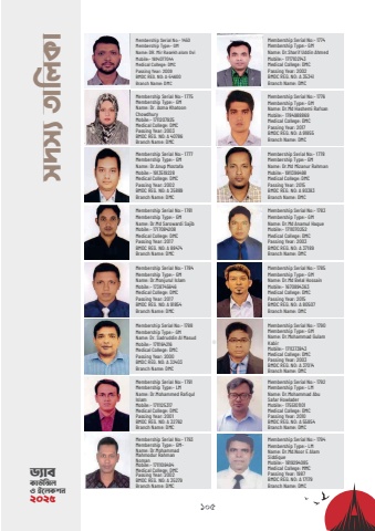 105m`m%u00a8 ZvwjKvMembership Serial No:- 1774Membership Type:- GMName: Dr.Sharif Uddin AhmedMobile:- 1717102143Medical College: DMCPassing Year: 2002BMDC REG. NO: A 35341Branch Name: DMCMembership Serial No:- 1450Membership Type:- GMName: DR. Mir Rasekh alom OviMobile:- 1614077044Medical College: DMCPassing Year: 2009BMDC REG. NO: A-54600Branch Name: DMCMembership Serial No:- 1776Membership Type:- GMName: Dr.Md Hashemi RafsanMobile:- 1784988869Medical College: DMCPassing Year: 2017BMDC REG. NO: A 91855Branch Name: DMCMembership Serial No:- 1775Membership Type:- GMName: Dr. Asma Khatoon ChowdhuryMobile:- 1711207925Medical College: DMCPassing Year: 2003BMDC REG. NO: A 40786Branch Name: DMCMembership Serial No:- 1778Membership Type:- GMName: Dr.Md Mizanur RahmanMobile:- 1911396498Medical College: DMCPassing Year: 2015BMDC REG. NO: A 80383Branch Name: DMCMembership Serial No:- 1777Membership Type:- GMName: Dr.Anup MostafaMobile:- 1913519228Medical College: DMCPassing Year: 2002BMDC REG. NO: A 35889Branch Name: DMCMembership Serial No:- 1783Membership Type:- GMName: Dr.Md Anamul HaqueMobile:- 1711070252Medical College: DMCPassing Year: 2003BMDC REG. NO: A 37189Branch Name: DMCMembership Serial No:- 1781Membership Type:- GMName: Dr.Md Sarowardi SajibMobile:- 1717084208Medical College: DMCPassing Year: 2017BMDC REG. NO: A 88474Branch Name: DMCMembership Serial No:- 1785Membership Type:- GMName: Dr.Md Belal HossainMobile:- 1670894363Medical College: DMCPassing Year: 2015BMDC REG. NO: A 80507Branch Name: DMCMembership Serial No:- 1784Membership Type:- GMName: Dr.Monjurul IslamMobile:- 1738745646Medical College: DMCPassing Year: 2017BMDC REG. NO: A 91854Branch Name: DMCMembership Serial No:- 1790Membership Type:- GMName: Dr.Mohammad Gulam KabirMobile:- 1711373843Medical College: DMCPassing Year: 2003BMDC REG. NO: A 37014Branch Name: DMCMembership Serial No:- 1788Membership Type:- GMName: Dr. Sadruddin Al MasudMobile:- 1711164216Medical College: DMCPassing Year: 2000BMDC REG. NO: A 32403Branch Name: DMCMembership Serial No:- 1792Membership Type:- LMName: Dr.Mohammad Abu Safar HowladerMobile:- 1755101101Medical College: DMCPassing Year: 2010BMDC REG. NO: A 55854Branch Name: DMCMembership Serial No:- 1791Membership Type:- LMName: Dr.Mohammed Rafiqul IslamMobile:- 1711125317Medical College: DMCPassing Year: 2001BMDC REG. NO: A 32762Branch Name: DMCMembership Serial No:- 1794Membership Type:- LMName: Dr.Md.Noor E Alam SiddiqueMobile:- 1819294085Medical College: MMCPassing Year: 1987BMDC REG. NO: A 17179Branch Name: DMCMembership Serial No:- 1793Membership Type:- GMName: Dr.Mohammad Mahmodur Rahman NomanMobile:- 1711106494Medical College: DMCPassing Year: 2002BMDC REG. NO: A 35279Branch Name: DMCW%u00a8veKvDw%u00ddj I B%u2021jKkb 2025