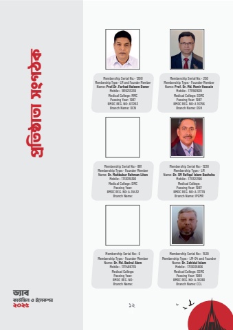 %ufffdwZ%u00f4vZv msMVKW%u00a8veKvDw%u00ddj I B%u2021jKkb 202501Membership Serial No:- 1290Membership Type:- LM and Founder MemberName: Prof.Dr. Farhad Haleem DonerMobile:- 1819213236Medical College: MMCPassing Year: 1987BMDC REG. NO: A17263Branch Name: DCNMembership Serial No:- 250Membership Type:- Founder MemberName: Prof. Dr. Md. Monir HossainMobile:- 1711561629Medical College: SOMCPassing Year: 1987BMDC REG. NO: A 16756Branch Name: DSHMembership Serial No:- 881Membership Type:- Founder MemberName: Dr. Mahbubur Rahman LitonMobile:- 1713015390Medical College: DMCPassing Year:BMDC REG. NO: A-19432Branch Name:Membership Serial No:- 1238Membership Type:- LMName: Dr. SM Rafiqul Islam BachchuMobile:- 1711322196Medical College:Passing Year: 1987BMDC REG. NO: A-17779Branch Name: IPGMRMembership Serial No:- 0Membership Type:- Founder MemberName: Dr. Md. Badrul AlomMobile:- 1711486735Medical College:Passing Year:BMDC REG. NO:Branch Name:Membership Serial No:- 1529Membership Type:- LM-04 and FounderName: Dr. Zahidul IslamMobile:- 1713035806Medical College: SSMCPassing Year: 1988BMDC REG. NO: A-18280Branch Name: CCL12