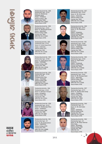 122m`m%u00a8 ZvwjKvMembership Serial No:- 1027Membership Type:- LM-53Name: Dr. Md. Ariful Islam Mobile:- 1712543794Medical College: DJMCPassing Year: 2002BMDC REG. NO: A-35066Branch Name: HFMCMembership Serial No:- 1026Membership Type:- LM-52Name: Dr. Muhammad Rashedul HasanMobile:- 1711366446Medical College: JIMCPassing Year: 2003BMDC REG. NO: A-38637Branch Name: HFMCMembership Serial No:- 1029Membership Type:- LM-57Name: Dr. Md. Mustahizur Rahman Mobile:- 1715490304Medical College: SBMCPassing Year: 2003BMDC REG. NO: A-37762Branch Name: HFMCMembership Serial No:- 1028Membership Type:- LM-54Name: Dr. Mohammad NurullaMobile:- 1819433507Medical College: SOMCPassing Year: 2002BMDC REG. NO: A-35301Branch Name: HFMCMembership Serial No:- 1031Membership Type:- LM-59Name: Dr. Shahjahan SarkerMobile:- 1710990059Medical College: SBMCPassing Year: 1990BMDC REG. NO: A-21079Branch Name: HFMCMembership Serial No:- 1030Membership Type:- LM-58Name: Dr. Enamul Hoque Khan Mobile:- 1732944757Medical College: USTCPassing Year: 2001BMDC REG. NO: A-32461Branch Name: HFMCMembership Serial No:- 1033Membership Type:- LM-63Name: Dr. Sayed Hasan Shahariar Mobile:- 1712082408Medical College: HFMCPassing Year: 2008BMDC REG. NO: A-50396Branch Name: HFMCMembership Serial No:- 1032Membership Type:- LM-60Name: Dr. Sajeda Begum AlviMobile:- 1715340901Medical College: SBMCPassing Year: 1992BMDC REG. NO: A-113310Branch Name: HFMCMembership Serial No:- 1035Membership Type:- LM-67Name: Dr. Md. Humayun Kabir Mobile:- 1819277094Medical College: SBMCPassing Year: 1983BMDC REG. NO: A-12498Branch Name: HFMCMembership Serial No:- 1034Membership Type:- LM-65Name: Dr. A.K.M Khalequzzaman DipuMobile:- 1712048957Medical College: MMCPassing Year: 2001BMDC REG. NO: A-33975Branch Name: HFMCMembership Serial No:- 1037Membership Type:- LM-71Name: Dr. Shariful Islam SerajiMobile:- 1715766624Medical College: DMCPassing Year: 2000BMDC REG. NO: 31093Branch Name: HFMCMembership Serial No:- 1036Membership Type:- LM-68Name: Dr. AHM Omer FarooqueMobile:- 1673565034Medical College: MMCPassing Year: 1983BMDC REG. NO: A-15544Branch Name: HFMCMembership Serial No:- 1040Membership Type:- LMName: Dr. Md. Kafil Uddin Raihan Mobile:- 1678138276Medical College: HFMCPassing Year: 2013BMDC REG. NO: A-63218Branch Name: HFMCMembership Serial No:- 1038Membership Type:- LM-72Name: Dr. Shoheb Alam MilonMobile:- 1720000177Medical College: SBMCPassing Year: 1989BMDC REG. NO: 28156Branch Name: HFMCMembership Serial No:- 1042Membership Type:- LMName: Dr. Md. Atiqur RahmanEbne SadiqMobile:- 1872125850Medical College: MMCPassing Year: 1989BMDC REG. NO: Branch Name: HFMCMembership Serial No:- 1041Membership Type:- LMName: Dr. Md. AsaduzzamanMobile:- 1790313444Medical College: HFMCPassing Year: 2013BMDC REG. NO: A-60996Branch Name: HFMCW%u00a8veKvDw%u00ddj I B%u2021jKkb 2025