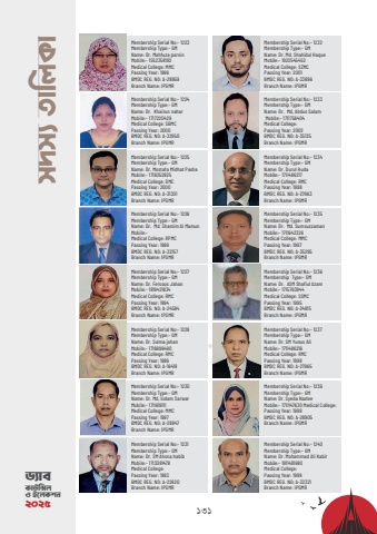 131m`m%u00a8 ZvwjKvMembership Serial No:- 1232Membership Type:- GMName: Dr. Md. Shahidul HaqueMobile:- 1922545452Medical College: SZMCPassing Year: 2001BMDC REG. NO: A-33896Branch Name: IPGMRMembership Serial No:- 1223Membership Type:- GMName: Dr. Mahfuza parvinMobile:- 1552358182Medical College: MMCPassing Year: 1996BMDC REG. NO: A-28959Branch Name: IPGMRMembership Serial No:- 1233Membership Type:- GMName: Dr. Md, Abdus Salam Mobile:- 1711756404 Medical College: Passing Year: 2002BMDC REG. NO: A-35135Branch Name: IPGMRMembership Serial No:- 1224Membership Type:- GMName: Dr. Khairun naharMobile:- 1717220429Medical College: SBMCPassing Year: 2000BMDC REG. NO: A-32950Branch Name: IPGMRMembership Serial No:- 1234Membership Type:- GMName: Dr. Durul HudaMobile:- 1711486217Medical College: RMCPassing Year: 1998BMDC REG. NO: A-27963Branch Name: IPGMRMembership Serial No:- 1225Membership Type:- GMName: Dr. Mostafa Midhat PashaMobile:- 1718252825Medical College: DMCPassing Year: 2000BMDC REG. NO: A-31301Branch Name: IPGMRMembership Serial No:- 1235Membership Type:- GMName: Dr. Md. SumsuzzamanMobile:- 1711642326Medical College: MMCPassing Year: 1997BMDC REG. NO: A-35295Branch Name: IPGMRMembership Serial No:- 1226Membership Type:- GMName: Dr. Md. Shamim Al MamunMobile:- Medical College: RPMCPassing Year: 1999BMDC REG. NO: A-32157Branch Name: IPGMRMembership Serial No:- 1236 Membership Type:- GMName: Dr. ASM Shafiul AzamMobile:- 1715763944Medical College: SSMCPassing Year: 1995BMDC REG. NO: A-24815Branch Name: IPGMRMembership Serial No:- 1227Membership Type:- GMName: Dr. Fersous JahanMobile:- 1819421834Medical College: RMCPassing Year: 1994BMDC REG. NO: A-24584Branch Name: IPGMRMembership Serial No:- 1237Membership Type:- GMName: Dr. SM Yunus AliMobile:- 1711486216Medical College: RMCPassing Year: 1998BMDC REG. NO: A-27965Branch Name: IPGMRMembership Serial No:- 1229Membership Type:- GMName: Dr. Sulma jahanMobile:- 1716996490Medical College: RMCPassing Year: 1986BMDC REG. NO: A-16418Branch Name: IPGMRMembership Serial No:- 1239Membership Type:- GMName: Dr. Syeda Nazlee Mobile:- 1711147630 Medical College: Passing Year: 1998BMDC REG. NO: A-28905Branch Name: IPGMRMembership Serial No:- 1230Membership Type:- GMName: Dr. Md, Golam SarwarMobile:- 1711619111Medical College: MMCPassing Year: 1997BMDC REG. NO: A-28847Branch Name: IPGMRMembership Serial No:- 1240Membership Type:- GMName: Dr. Mohammad Ali Kabir Mobile:- 1911481680 Medical College: Passing Year: 1999BMDC REG. NO: A-32321Branch Name: IPGMRMembership Serial No:- 1231Membership Type:- GMName: Dr. SM Ahsna habib Mobile:- 1713081478 Medical College: Passing Year: 1993BMDC REG. NO: A-22620Branch Name: IPGMRW%u00a8veKvDw%u00ddj I B%u2021jKkb 2025