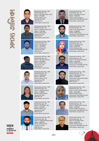 140m`m%u00a8 ZvwjKvMembership Serial No:- 2703Membership Type:- GMName: Dr. Md. MoniruzzamanMobile:- 1779133918Medical College: I.B.M.C.R Passing Year: 2010 BMDC REG. NO: Branch Name: Jessore DistMembership Serial No:- 2694Membership Type:- LMName: Dr. Md. Robiul Islam TuhinMobile:- 1717512918Medical College: K.M.C Passing Year: 2012 BMDC REG. NO: Branch Name: Jessore DistMembership Serial No:- 2704Membership Type:- GMName: Dr. Md. AsaduzzamanMobile:- 1745919158Medical College: R.M.C Passing Year: 2007 BMDC REG. NO: Branch Name: Jessore DistMembership Serial No:- 2696Membership Type:- GMName: Dr. Raihanul Islam EmonMobile:- 1717094306Medical College: M.M.C Passing Year: 2010 BMDC REG. NO: Branch Name: Jessore DistMembership Serial No:- 2705Membership Type:- GMName: Dr. Sonia Sharmin Mobile:- 1950679761Medical College: R.C.M.C Passing Year: 2016 BMDC REG. NO: Branch Name: Jessore DistMembership Serial No:- 2697Membership Type:- GMName: Dr. Md. AlamgirMobile:- 1712200283Medical College: R.M.C Passing Year: 1990 BMDC REG. NO: Branch Name: Jessore DistMembership Serial No:- 2707Membership Type:- GMName: Dr. Md. Tasdikur Rahman Mobile:- 1710750525 Medical College: D.N.M.C. Passing Year: 2014 BMDC REG. NO: Branch Name: Jessore DistMembership Serial No:- 2698Membership Type:- GMName: Dr. Md. AmiruzzamanMobile:- 1921279898Medical College: K.M.C Passing Year: 2014 BMDC REG. NO: Branch Name: Jessore DistMembership Serial No:- 2708Membership Type:- GMName: Dr. Md. Mazhrul IslamMobile:- 1712800043Medical College: University dental college Passing Year: 2003 BMDC REG. NO: Branch Name: Jessore DistMembership Serial No:- 2699Membership Type:- GMName: Dr. GMSK DalimMobile:- 1726757474Medical College: S.B.M.C Passing Year: 2018 BMDC REG. NO: Branch Name: Jessore DistMembership Serial No:- 2709Membership Type:- GMName: Dr. Must. Mahfuza KhatunMobile:- 1314645884Medical College: S.B.M.C Passing Year: 2003 BMDC REG. NO: Branch Name: Jessore DistMembership Serial No:- 2700Membership Type:- GMName: Dr. Nabila RahamanMobile:- 1717809541Medical College: K.W.M.C Passing Year: 2013 BMDC REG. NO: Branch Name: Jessore DistMembership Serial No:- 2710Membership Type:- GMName: Dr. Mohd. Moshiul HasnatMobile:- 1711352844Medical College: B.S.G.R.M.A.C Passing Year: 2001 BMDC REG. NO: Branch Name: Jessore DistMembership Serial No:- 2701Membership Type:- GMName: Dr. Md. Rafsun Jany Mobile:- 1742176176Medical College: J.M.C Passing Year: 2019 BMDC REG. NO: Branch Name: Jessore DistMembership Serial No:- 2711Membership Type:- GMName: Dr. Md. Rabiul IslamMobile:- 1934101394Medical College: S.B.M.C Passing Year: 1996 BMDC REG. NO: Branch Name: Jessore DistMembership Serial No:- 2702Membership Type:- GMName: Dr. Sayad Md Mashiul AzamMobile:- 1912810745Medical College: N.B.M.C Passing Year: 2010 BMDC REG. NO: Branch Name: Jessore DistW%u00a8veKvDw%u00ddj I B%u2021jKkb 2025