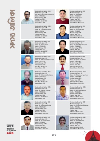 156m`m%u00a8 ZvwjKvMembership Serial No:- 241Membership Type:- GMName: DR. Abdul HadiMobile:- 1740592594Medical College: USTCPassing Year: 1997BMDC REG. NO: 28021Branch Name: Molvi. DistMembership Serial No:- 2549Membership Type:- LMName: DR. Md. Fakhrul Hasan choudhury TipuMobile:- 1718160946Medical College: MMCPassing Year: 2004BMDC REG. NO: A-41816Branch Name: MMCMembership Serial No:- 242Membership Type:- GMName: DR. MD. Sohel ranaMobile:- 1711451817Medical College: RMCPassing Year: 2001BMDC REG. NO: 35940Branch Name: Molvi. DistMembership Serial No:- 2550Membership Type:- LMName: DR. ASM Meah UzzamanMobile:- 171130147Medical College: MMCPassing Year: 1982BMDC REG. NO: A-13225Branch Name: MMCMembership Serial No:- 243Membership Type:- GMName: DR. Ahmed faisal zamanMobile:- 1749682167Medical College: RPMCPassing Year: 1999BMDC REG. NO: 32093Branch Name: Molvi. DistMembership Serial No:- 2551Membership Type:- GMName: DR. Masud ParvezMobile:- 1712925434Medical College: MMCPassing Year: 2012BMDC REG. NO: A-65757Branch Name: MMCMembership Serial No:- 454Membership Type:- LMName: DR. Syed Ezaz AhmedMobile:- 1711406248Medical College: DMCPassing Year: 1992BMDC REG. NO: A22260Branch Name: Molvi. DistMembership Serial No:- 2552Membership Type:- LMName: DR. Mohammad Aminul islamMobile:- 1711207365Medical College: MMCPassing Year: 2000BMDC REG. NO: A-31337Branch Name: MMCMembership Serial No:- 2108Membership Type:- GMName: DR. Muhammad Syed inamMobile:- 1715240468Medical College: DMCPassing Year: 2002BMDC REG. NO: A-34887Branch Name: Molvi. DistMembership Serial No:- 2553Membership Type:- GMName: DR. Mohammad ShahjahanMobile:- 1712833639Medical College: MMCPassing Year: 2000BMDC REG. NO: A-31350Branch Name: MMCMembership Serial No:- 2109Membership Type:- GMName: DR. AZM Mour RahmanMobile:- 1711868929Medical College: RPMCPassing Year: 1986BMDC REG. NO: A-17279Branch Name: Molvi. DistMembership Serial No:- 2554Membership Type:- LMName: DR. Shamsur RahmanMobile:- 1712505562Medical College: MMCPassing Year: 1989BMDC REG. NO: A-20537Branch Name: MMCMembership Serial No:- 1981Membership Type:- GMName: DR. MD. Shafiqur RahamanMobile:- 1711126343 Medical College: SSMC Passing Year: BMDC REG. NO: A-25712Branch Name: Muns. DistMembership Serial No:- 239Membership Type:- LMName: DR. Mohammed EyahiaMobile:- 1712072007Medical College: SOMCPassing Year: 1984BMDC REG. NO: 15340Branch Name: Molvi. DistMembership Serial No:- 1982Membership Type:- LMName: DR. Amena KhatunMobile:- 1923966854Medical College: CUMCPassing Year: 2013BMDC REG. NO: A-52422Branch Name: Muns. DistMembership Serial No:- 240Membership Type:- LMName: DR. MD Sultan AhmedMobile:- 1711316843Medical College: SOMCPassing Year: 1991BMDC REG. NO: 21310Branch Name: Molvi. DistW%u00a8veKvDw%u00ddj I B%u2021jKkb 2025