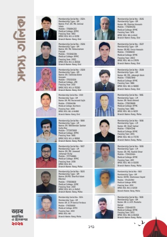 171m`m%u00a8 ZvwjKvMembership Serial No:- 2505 Membership Type:- GMName: DR. Momtaz Hossain Mobile:- 1715094255Medical College: RPMCPassing Year: 1976BMDC REG. NO: A-6441Branch Name: Rang. DistMembership Serial No:- 2504Membership Type:- GMName: Prof. DR. MD. Aminul islam Mobile:- 1716984303Medical College: RPMCPassing Year: 1983BMDC REG. NO: A-12219Branch Name: Rang. DistMembership Serial No:- 2507 Membership Type:- GMName: DR.MD. Feroz Hossain Mobile:- 1723616412Medical College: RPMCPassing Year: 2003BMDC REG. NO: A-37879Branch Name: Rang. DistMembership Serial No:- 2506Membership Type:- GMName: DR. Md. Rokuzzaman Pazzab Mobile:- 1723062394Medical College: RPMCPassing Year: 2003BMDC REG. NO: A-38356Branch Name: Rang. DistMembership Serial No:- 2509 Membership Type:- GMName: DR. MD. Jahangir Alom Mobile:- 1712657649Medical College: RPMCPassing Year: 1986BMDC REG. NO: A-16880Branch Name: Rang. DistMembership Serial No:- 2508Membership Type:- GMName: DR. Fahmida Binte Hossain Mobile:- 1715122026Medical College: JMCPassing Year: 2012BMDC REG. NO: A-70382Branch Name: Rang. DistMembership Serial No:- 1895 Membership Type:- LMName: DR. Neaz AhmedMobile:- 1715039695Medical College: RPMCPassing Year: 1985BMDC REG. NO: A-16313Branch Name: Rang. MohaMembership Serial No:- 2510Membership Type:- GMName: DR. MD. Nurannabi Sajib Mobile:- 1710264386Medical College: NorthernPassing Year: 2018BMDC REG. NO: A-94890Branch Name: Rang. DistMembership Serial No:- 1906 Membership Type:- LMName: DR. Shafi Sarker Mobile:- 1719247348Medical College: RPMCPassing Year: 2015BMDC REG. NO: A-77278Branch Name: Rang. MohaMembership Serial No:- 1898Membership Type:- LMName: DR. Nikhilendar Sanker Guha Roy Mobile:- 1773973800Medical College: RPMCPassing Year: 1985BMDC REG. NO: A-18090Branch Name: Rang. MohaMembership Serial No:- 1909 Membership Type:- LMName: DR. MD. Kashid Omar Mobile:- 1724122454Medical College: RPMCPassing Year: 2011BMDC REG. NO: A-55010Branch Name: Rang. MohaMembership Serial No:- 1907Membership Type:- LMName: DR. MD. Jawwad Jahangir Ricky Mobile:- 1717749965Medical College: RPMCPassing Year: 2019BMDC REG. NO: Branch Name: Rang. MohaMembership Serial No:- 1922Membership Type:- GMName: DR.MD. Shahnewaz Sayed Mobile:- 1744347841Medical College: RPMCPassing Year: 2012BMDC REG. NO: A-63138Branch Name: Rang. MohaMembership Serial No:- 1920Membership Type:- GMName: DR.MD. Shariful Islam (Nontu)Mobile:- 1711009929Medical College: SZMCPassing Year: 2001BMDC REG. NO: A-34043Branch Name: Rang. MohaMembership Serial No:- 1929Membership Type:- GMName: DR. A .H.M. Mostafa Kaisar Mobile:- 1725450175Medical College: RPMCPassing Year: 2012BMDC REG. NO: A-65459Branch Name: Rang. MohaMembership Serial No:- 1924Membership Type:- GMName: DR. A.T.M Samiul Ferdaus Mobile:- 1719359825Medical College: RPMCPassing Year: 2012BMDC REG. NO: Branch Name: Rang. MohaW%u00a8veKvDw%u00ddj I B%u2021jKkb 2025