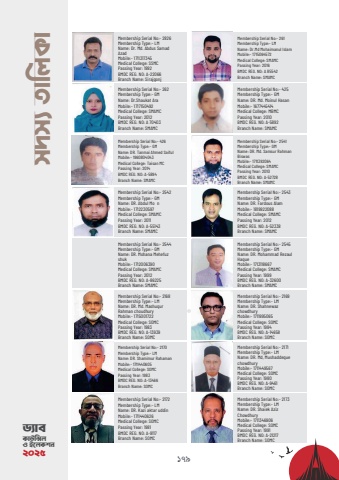 179m`m%u00a8 ZvwjKvMembership Serial No:- 261Membership Type:- LMName: Dr.Md Mohaimanul IslamMobile:- 1715064572Medical College: SMAMCPassing Year: 2016BMDC REG. NO: A 85542Branch Name: SMAMCMembership Serial No:- 2826Membership Type:- LMName: Dr. Md. Abdus Samad AzadMobile:- 1711317345Medical College: SSMCPassing Year: 1992BMDC REG. NO: A-22066Branch Name: SirajgonjMembership Serial No:- 425Membership Type:- GMName: DR. Md. Moinul HasanMobile:- 1677445414Medical College: MBMCPassing Year: 2010BMDC REG. NO: A-5892Branch Name: SMAMCMembership Serial No:- 262Membership Type:- GMName: Dr.Shaukat AraMobile:- 1717150492Medical College: SMAMCPassing Year: 2012BMDC REG. NO: A 70403Branch Name: SMAMCMembership Serial No:- 2541Membership Type:- GMName: DR. Md. Samsur Rahman BiswasMobile:- 1711392064Medical College: SMAMCPassing Year: 2010BMDC REG. NO: A-52728Branch Name: SMAMCMembership Serial No:- 426Membership Type:- GMName: DR. Tanmai Ahmed SaifulMobile:- 1960804043Medical College: Taisan MCPassing Year: 2014BMDC REG. NO: A-5894Branch Name: SMAMCMembership Serial No:- 2543Membership Type:- GMName: DR. Fardous AlamMobile:- 1819922088Medical College: SMAMCPassing Year: 2012BMDC REG. NO: A-52338Branch Name: SMAMCMembership Serial No:- 2542Membership Type:- GMName: DR. Abdul MonMobile:- 1712230597Medical College: SMAMCPassing Year: 2011BMDC REG. NO: A-55143Branch Name: SMAMCMembership Serial No:- 2545Membership Type:- GMName: DR. Mohammad Rezaul HaqueMobile:- 1713118667Medical College: SMAMCPassing Year: 1999BMDC REG. NO: A-32600Branch Name: SMAMCMembership Serial No:- 2544Membership Type:- GMName: DR. Mohana Mehefuz shukMobile:- 1712006390Medical College: SMAMCPassing Year: 2012BMDC REG. NO: A-86225Branch Name: SMAMCMembership Serial No:- 2169Membership Type:- LMName: DR. Shahnewaz chowdhuryMobile:- 1711995065Medical College: SOMCPassing Year: 1984BMDC REG. NO: A-14658Branch Name: SOMCMembership Serial No:- 2168Membership Type:- LMName: DR. Md. Mashuqur Rahman choudhuryMobile:- 1715001722Medical College: SOMCPassing Year: 1983BMDC REG. NO: A-13939Branch Name: SOMCMembership Serial No:- 2171Membership Type:- LMName: DR. Md, Mushaddeque chowdhuryMobile:- 1711449567Medical College: SOMCPassing Year: 1980BMDC REG. NO: A-9461Branch Name: SOMCMembership Serial No:- 2170Membership Type:- LMName: DR. Shamimur RahamanMobile:- 1711440605Medical College: SOMCPassing Year: 1983BMDC REG. NO: A-13466Branch Name: SOMCMembership Serial No:- 2173Membership Type:- LMName: DR. Shaiek Aziz ChowdhuryMobile:- 1711346906Medical College: SOMCPassing Year: 1991BMDC REG. NO: A-21217Branch Name: SOMCMembership Serial No:- 2172Membership Type:- LMName: DR. Kazi aktar uddinMobile:- 1711440626Medical College: SOMCPassing Year: 1981BMDC REG. NO: A-9117Branch Name: SOMCW%u00a8veKvDw%u00ddj I B%u2021jKkb 2025
