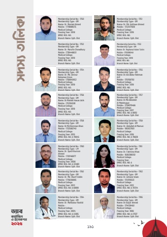191m`m%u00a8 ZvwjKvMembership Serial No:- 1751Membership Type:- GMName: Dr. Md. Ashfaue AhmedMobile:- 1733477939Medical College: Passing Year: 2019BMDC REG. NO: Branch Name: Sylh. DistMembership Serial No:- 1750Membership Type:- GMName: Dr. Mostak AhmedMobile:- 1779998575Medical College: Passing Year: 2018BMDC REG. NO: Branch Name: Sylh. DistMembership Serial No:- 1753Membership Type:- GMName: Dr. Rayhanul Islam TuhinMobile:- 1751295149Medical College: Passing Year: 2019BMDC REG. NO: Branch Name: Sylh. DistMembership Serial No:- 1752Membership Type:- GMName: Dr. Marufin ChowdhuryMobile:- 1736446622Medical College: Passing Year: 2019BMDC REG. NO: Branch Name: Sylh. DistMembership Serial No:- 1755Membership Type:- GMName: Dr.md.Abdur Rahman ArifMobile:- 1751156702Medical College: Passing Year: 2019BMDC REG. NO: Branch Name: Sylh. DistMembership Serial No:- 1754Membership Type:- GMName: Dr. Md. Aminur Rahaman EmonMobile:- 1756642853Medical College: Passing Year: 2019BMDC REG. NO: Branch Name: Sylh. DistMembership Serial No:- 1757Membership Type:- GMName: Dr.Md.Abdullah Al MakshuqueMobile:- 1738070466Medical College: Passing Year: 2017BMDC REG. NO: A 89112Branch Name: Sylh. DistMembership Serial No:- 1756Membership Type:- GMName: Dr.Mahedi Hasan AnikMobile:- 1712392281Medical College: Passing Year: 2019BMDC REG. NO: Branch Name: Sylh. DistMembership Serial No:- 1759Membership Type:- GMName: Dr. Abdullah Al MamunMobile:- 1912837821Medical College: Passing Year: 2016BMDC REG. NO: A 79638Branch Name: Sylh. DistMembership Serial No:- 1758Membership Type:- GMName: Dr.Md.Romman KhanMobile:- 1723565740Medical College: Passing Year: 2015BMDC REG. NO: A 79645Branch Name: Sylh. DistMembership Serial No:- 1761Membership Type:- GMName: Dr. Fahmina KhanMobile:- 1626398202Medical College: Passing Year: BMDC REG. NO: ABranch Name: Sylh. DistMembership Serial No:- 1760Membership Type:- LMName: Dr. Syed Khurrom AhmedMobile:- 1720146977Medical College: Passing Year: 2006BMDC REG. NO: A 32480Branch Name: Sylh. DistMembership Serial No:- 1763Membership Type:- GMName: Dr. Azharul IslamMobile:- 1722110523Medical College: Passing Year: 2013BMDC REG. NO: A 70724Branch Name: Sylh. DistMembership Serial No:- 1762Membership Type:- GMName: Dr. Md. Sharif UddinMobile:- 1776226985Medical College: Passing Year: 2013BMDC REG. NO: A 68918Branch Name: Sylh. DistMembership Serial No:- 1765Membership Type:- GMName: Dr.Guljar AhmedMobile:- 1714138492Medical College: Passing Year: 1996BMDC REG. NO: A 27517Branch Name: Sylh. DistMembership Serial No:- 1764Membership Type:- GMName: Dr. Mahbubur RashidMobile:- Medical College: Passing Year: 2004BMDC REG. NO: A 23815Branch Name: Sylh. DistW%u00a8veKvDw%u00ddj I B%u2021jKkb 2025