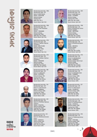 192m`m%u00a8 ZvwjKvMembership Serial No:- 1767Membership Type:- GMName: Dr.Atik MahmudMobile:- 1717281682Medical College: Passing Year: 1979BMDC REG. NO: A 9136Branch Name: Sylh. DistMembership Serial No:- 1766Membership Type:- GMName: Dr.Rafi AhmedMobile:- 1671134368Medical College: Passing Year: BMDC REG. NO: ABranch Name: Sylh. DistMembership Serial No:- 1769Membership Type:- LMName: Dr.Mohammad Taimur Hossain TalukdarMobile:- 1918779260Medical College: Passing Year: 2014BMDC REG. NO: A 32545Branch Name: Sylh. DistMembership Serial No:- 1768Membership Type:- GMName: Dr. Aam Shazzadur RahmanMobile:- 1796589891Medical College: Passing Year: 2001BMDC REG. NO: A 37967Branch Name: Sylh. DistMembership Serial No:- 1771Membership Type:- GMName: Dr.Mohammad Bashir UddinMobile:- 1811130132Medical College: Passing Year: BMDC REG. NO: A 42794Branch Name: Sylh. DistMembership Serial No:- 1770Membership Type:- GMName: Dr. Sadman Shahriar chowdhuryMobile:- 929 471 6188Medical College: Passing Year: 2016BMDC REG. NO: ABranch Name: Sylh. DistMembership Serial No:- 1773Membership Type:- GMName: Dr. Ashraful AlamMobile:- 1676882837Medical College: North-East Medical College.Passing Year: 2018BMDC REG. NO: A-107915Branch Name: Sylh. DistMembership Serial No:- 1772Membership Type:- GMName: Dr. Akhlakur Rahman chowdhuryMobile:- 1712516299Medical College: Passing Year: 2013BMDC REG. NO: A 65870Branch Name: Sylh. DistMembership Serial No:- 304Membership Type:- GMName: Dr. Md Shafiul AlamMobile:- 1711981993Medical College: SZMCPassing Year: 2001BMDC REG. NO: A34475Branch Name: SZMCMembership Serial No:- 296Membership Type:- GMName: Dr. Sadia AfrinMobile:- 1874310101Medical College: TMCPassing Year: 2014BMDC REG. NO: A75444Branch Name: SZMCMembership Serial No:- 327Membership Type:- GMName: Dr. Abdul KaiumMobile:- 1744583727Medical College: SZMCPassing Year: 2016BMDC REG. NO: 83178Branch Name: SZMCMembership Serial No:- 324Membership Type:- GMName: Dr. Altaf Hossain Mobile:- 1716168644Medical College: SZMCPassing Year: 2000BMDC REG. NO: A32051Branch Name: SZMCMembership Serial No:- 334Membership Type:- GMName: Dr. Md Rezaul KarimMobile:- 1712182241Medical College: SZMCPassing Year: 2002BMDC REG. NO: A36900Branch Name: SZMCMembership Serial No:- 333Membership Type:- GMName: Dr. Md Saifur Rahman ShaheenMobile:- 1711467176Medical College: SZMCPassing Year: 2001BMDC REG. NO: A33983Branch Name: SZMCMembership Serial No:- 346Membership Type:- LMName: Dr. Mohammad Anisur RahmanMobile:- 1711154886Medical College: SZMCPassing Year: 1999BMDC REG. NO: A29617Branch Name: SZMCMembership Serial No:- 345Membership Type:- LMName: Dr. Mohammad Azizulla HaqueMobile:- 1818809773Medical College: RMCPassing Year: 2001BMDC REG. NO: A32972Branch Name: SZMCW%u00a8veKvDw%u00ddj I B%u2021jKkb 2025