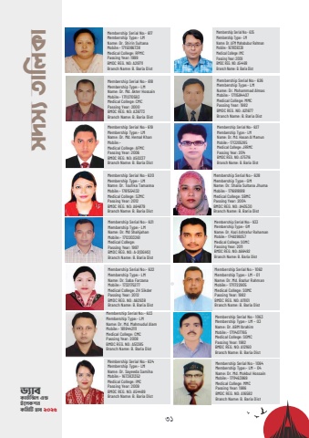 31W%u00a8veKvDw%u00ddj G%u00db B%u2021jKkbKwgwU nve2025m`m%u00a8 ZvwjKvMembership Serial No:- 617Membership Type:- LMName: Dr. Shirin SultanaMobile:- 1715086738Medical College: RPMCPassing Year: 1999BMDC REG. NO: A29711Branch Name: B. Baria DistMembership Serial No:- 618Membership Type:- LMName: Dr. Md. Akter HossainMobile:- 1711270593Medical College: CMCPassing Year: 2000BMDC REG. NO: A36773Branch Name: B. Baria DistMembership Serial No:- 625Membership Type:- LMName: Dr. AFM Mahabubur RahmanMobile:- 1678138338Medical College: IMCPassing Year: 2009BMDC REG. NO: A54488Branch Name: B. Baria DistMembership Serial No:- 626Membership Type:- LMName: Dr. Mohammad AlmasMobile:- 1711584407Medical College: MMCPassing Year: 1982BMDC REG. NO: A21677Branch Name: B. Baria DistMembership Serial No:- 627Membership Type:- LMName: Dr. Md. Hasan Al MamunMobile:- 1713205285Medical College: JRRMCPassing Year: 2014BMDC REG. NO: A75716Branch Name: B. Baria DistMembership Serial No:- 628Membership Type:- GMName: Dr. Shaila Sultana JhumaMobile:- 1716918918Medical College: SBMCPassing Year: 2004BMDC REG. NO: A40530Branch Name: B. Baria DistMembership Serial No:- 933Membership Type:- GMName: Dr. Kazi Ashrafur RahamanMobile:- 1749299257Medical College: SOMCPassing Year: 2011BMDC REG. NO: A66492Branch Name: B. Baria DistMembership Serial No:- 1062Membership Type:- LM %u2013 01Name: Dr. Md. Bazlur RahmanMobile:- 1711722905Medical College: SOMCPassing Year: 1982BMDC REG. NO: A11101Branch Name: B. Baria DistMembership Serial No:- 1063Membership Type:- LM %u2013 03Name: Dr. ABM IbrahimMobile:- 1711407765Medical College: SOMCPassing Year: 1982BMDC REG. NO: A12160Branch Name: B. Baria DistMembership Serial No:- 1064Membership Type:- LM %u2013 04Name:Dr. Md. Mokbul HossainMobile:- 1711463969Medical College: MMCPassing Year: 1986BMDC REG. NO: A16582Branch Name: B. Baria DistMembership Serial No:- 619Membership Type:- LMName: Dr. Md. Hemal KhanMobile:-Medical College: AFMCPassing Year: 2006BMDC REG. NO: A50237Branch Name: B. Baria DistMembership Serial No:- 620Membership Type:- LMName: Dr. Toufika TamannaMobile:- 1781554132Medical College: SZMCPassing Year: 2012BMDC REG. NO: A64879Branch Name: B. Baria DistMembership Serial No:- 621Membership Type:- LMName: Dr. Md ShahjahanMobile:- 1712203261Medical College:Passing Year: 1997BMDC REG. NO: A-2(DGHS)Branch Name: B. Baria DistMembership Serial No:- 622Membership Type:- LMName: Dr. Saba FarzanaMobile:- 1732175277Medical College: ZH SikderPassing Year: 2012BMDC REG. NO: A62938Branch Name: B. Baria DistMembership Serial No:- 623Membership Type:- LMName: Dr. Md. Mahmudul AlamMobile:- 1818442111Medical College: CMCPassing Year: 2008BMDC REG. NO: A51385Branch Name: B. Baria DistMembership Serial No:- 624Membership Type:- LMName: Dr. Sayeeda SamihaMobile:- 1673831352Medical College: IMCPassing Year: 2009BMDC REG. NO: A54489Branch Name: B. Baria Dist