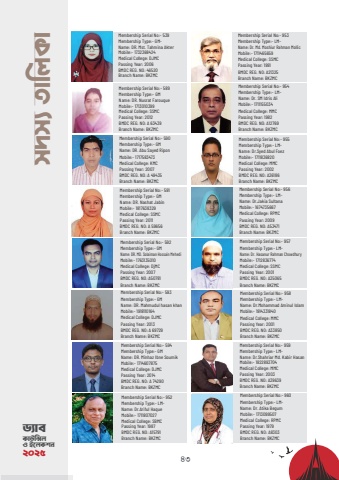43m`m%u00a8 ZvwjKvW%u00a8veKvDw%u00ddj I B%u2021jKkb 2025Membership Serial No:- 539Membership Type:- GMName: DR. Mst. Tahmina AkterMobile:- 1732368424Medical College: DJMCPassing Year: 2006BMDC REG. NO: 46520Branch Name: BKZMCMembership Serial No:- 589Membership Type:- GMName: DR. Nusrat FarouqueMobile:- 1713010399Medical College: SSMCPassing Year: 2012BMDC REG. NO: A 63439Branch Name: BKZMCMembership Serial No:- 590Membership Type:- GMName: DR. Abu Sayed RiponMobile:- 1717583473Medical College: KMCPassing Year: 2007BMDC REG. NO: A 49435Branch Name: BKZMCMembership Serial No:- 591Membership Type:- GMName: DR. Nashat JabinMobile:- 1817638329Medical College: SSMCPassing Year: 2011BMDC REG. NO: A 59656Branch Name: BKZMCMembership Serial No:- 592Membership Type:- GMName: DR. MD. Solaiman Hossain MehediMobile:- 1763135010Medical College: DjMCPassing Year: 2007BMDC REG. NO: A50781Branch Name: BKZMCMembership Serial No:- 593Membership Type:- GMName: DR. Mahmudul hasan khanMobile:- 1918110164Medical College: DJMCPassing Year: 2013BMDC REG. NO: A 69729Branch Name: BKZMCMembership Serial No:- 594Membership Type:- GM Name: DR. Minhaz Ibne SoumikMobile:- 1714607875Medical College: DJMCPassing Year: 2014BMDC REG. NO: A 74290Branch Name: BKZMCMembership Serial No:- 952Membership Type:- LMName: Dr.Ariful HaqueMobile:- 1711807027Medical College: SBMCPassing Year: 1987BMDC REG. NO: A15791Branch Name: BKZMCMembership Serial No:- 953Membership Type:- LMName: Dr. Md. Moshiur Rahman MollicMobile:- 1711465659Medical College: SSMCPassing Year: 1991BMDC REG. NO: A21325Branch Name: BKZMCMembership Serial No:- 954Membership Type:- LMName: Dr. SM Idris AliMobile:- 1711155034Medical College: MMCPassing Year: 1982BMDC REG. NO: A12769Branch Name: BKZMCMembership Serial No:- 955Membership Type:- LMName: Dr.Syed Abul FoezMobile:- 1711836820Medical College: MMCPassing Year: 2002BMDC REG. NO: A36186Branch Name: BKZMCMembership Serial No:- 956Membership Type:- LMName: Dr.Jakia SultanaMobile:- 1674735667Medical College: RPMCPassing Year: 2009BMDC REG. NO: A53471Branch Name: BKZMCMembership Serial No:- 957Membership Type:- LMName: Dr. Hasanur Rahman ChowdhuryMobile:- 1712836774Medical College: SSMCPassing Year: 2001BMDC REG. NO: A35065Branch Name: BKZMCMembership Serial No:- 958Membership Type:- LMName: Dr.Mohammad Aminul IslamMobile:- 1914331840Medical College: MMCPassing Year: 2001BMDC REG. NO: A33850Branch Name: BKZMCMembership Serial No:- 959Membership Type:- LMName: Dr.Shahriar Md. Kabir HasanMobile:- 1822893704Medical College: MMCPassing Year: 2003BMDC REG. NO: A39639Branch Name: BKZMCMembership Serial No:- 960Membership Type:- LMName: Dr. Atika BegumMobile:- 1713099507Medical College: RPMCPassing Year: 1979BMDC REG. NO: A8303Branch Name: BKZMC