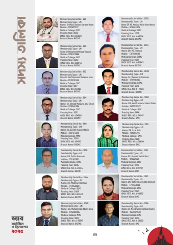 44m`m%u00a8 ZvwjKvW%u00a8veKvDw%u00ddj I B%u2021jKkb 2025Membership Serial No:- 961Membership Type:- LMName: Dr.Mirza Golam Sarwar MoonMobile:- 1721937337Medical College: MMCPassing Year: 2002BMDC REG. NO: A37600Branch Name: BKZMCMembership Serial No:- 962Membership Type:- LMName: Dr.Muhammad Mofzzal HossainMobile:- 1726222666Medical College: MMCPassing Year: 2002BMDC REG. NO: A36946Branch Name: BKZMCMembership Serial No:- 963Membership Type:- LMName: Dr. Gazi Mohammad Shaheenur islamMobile:- 1713035389Medical College: CMCPassing Year: 1997BMDC REG. NO: A27190Branch Name: BKZMCMembership Serial No:- 964Membership Type:- LMName: Dr. Ahmad Monjurul Aziz EmonMobile:- 1715040286Medical College: CMCPassing Year: 2001BMDC REG. NO: A34566Branch Name: BKZMCMembership Serial No:- 966Membership Type:- LMName: Dr.AZIZUR Haque ManikMobile:- 1915454228Medical College: MMCPassing Year: 2009BMDC REG. NO: A54110Branch Name: BKZMCMembership Serial No:- 1959Membership Type:- LMName: DR. Saifur RahmanMobile:- 1712263551Medical College: DjMCPassing Year: 2005BMDC REG. NO: A 44264Branch Name: BKZMCMembership Serial No:- 1964Membership Type:- GMName: DR. Mashiur RahmanMobile:- 1717953998Medical College: DjMCPassing Year: 2009BMDC REG. NO: A 53423Branch Name: BKZMCMembership Serial No:- 2088Membership Type:- LMName: DR. Muhammad Abul FathaMobile:- 1715289095Medical College: MMCPassing Year: 2003BMDC REG. NO: A-38947Branch Name: BKZMCMembership Serial No:- 2250Membership Type:- LMName: DR. MD. Manjurul Karim Khan MamunMobile:- 1819443875Medical College: MMCPassing Year: 2005BMDC REG. NO: A-45014Branch Name: BKZMCMembership Serial No:- 2254Membership Type:- LMName: DR. MD. HamzaMobile:- 1767610580Medical College: SBMCPassing Year: 2012BMDC REG. NO: A-62943Branch Name: BKZMCMembership Serial No:- 2539Membership Type:- GMName: Dr. Masum Ur RahmanMobile:- 1722166885Medical College: DJMCPassing Year: 2013BMDC REG. NO: A- 70014Branch Name: BKZMCMembership Serial No:- 1360Membership Type:- LMName: DR. kazi Mazharul Islam DolonMobile:- 1933225577Medical College: BMCPassing Year: 1994BMDC REG. NO: A 24047Branch Name: BMCMembership Serial No:- 1361Membership Type:- LM Name: DR. Itrat AzizMobile:- 1819165716Medical College: BMCPassing Year: 1996BMDC REG. NO: A 26694Branch Name: BMCMembership Serial No:- 1362Membership Type:- LM Name: DR. Ahmed Saiful BariMobile:- 1819221021Medical College: BMCPassing Year: 1999BMDC REG. NO: A 29797Branch Name: BMCMembership Serial No:- 1363Membership Type:- LM Name: DR. Nafiz Imaz Uddin AhmedMobile:- 1749559988Medical College: BMCPassing Year: 2004BMDC REG. NO: A 40952Branch Name: BMCMembership Serial No:- 1364Membership Type:- LMName: DR. Md. Ibrahim Rahman (Rume)Mobile:- 1552454530Medical College: BMCPassing Year: 2010BMDC REG. NO: A 58292Branch Name: BMC