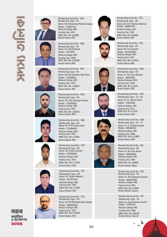 45m`m%u00a8 ZvwjKvW%u00a8veKvDw%u00ddj I B%u2021jKkb 2025Membership Serial No:- 1365Membership Type:- LMName: DR. Mohammad Mominul HaqueMobile:- 1726207431Medical College: BMCPassing Year: 2012BMDC REG. NO: A 62982Branch Name: BMCMembership Serial No:- 1366Membership Type:- GMName: Dr. Faisal AhmedMobile:- 1711173877Medical College: BMCPassing Year: 2008BMDC REG. NO: A 50388Branch Name: BMCMembership Serial No:- 1367Membership Type:- GMName: DR. Md Sakandar Hyet KhanMobile:- 1717099942Medical College: BMCPassing Year: 2010BMDC REG. NO: A 58082Branch Name: BMCMembership Serial No:- 1368Membership Type:- GMName: DR. Jian Zahangir HassanMobile:- 1713000033Medical College: BMCPassing Year: 2010BMDC REG. NO: A 58223Branch Name: BMCMembership Serial No:- 1369Membership Type:- GMName: DR. M M Faniqul IslamMobile:- 1734956943Medical College: BMCPassing Year: 2014BMDC REG. NO: A 73984Branch Name: BMCMembership Serial No:- 1370Membership Type:- GMName: DR. Arman HossainMobile:- 1671088620Medical College: BMCPassing Year: 2014BMDC REG. NO: A 75352Branch Name: BMCMembership Serial No:- 1371Membership Type:- GMName: DR. Golam MoktadirMobile:- 1677374440Medical College: BMCPassing Year: 2015BMDC REG. NO: A 74932Branch Name: BMCMembership Serial No:- 1372Membership Type:- GMName: DR. Md Mahabub Alam MondolMobile:- 1689056540Medical College: BMCPassing Year: 2015BMDC REG. NO: A 78067Branch Name: BMCMembership Serial No:- 1373Membership Type:- GMName: DR. H.M. Mashiur RahmanMobile:- 1989674241Medical College: BMCPassing Year: 2016BMDC REG. NO: A 86298Branch Name: BMCMembership Serial No:- 1374Membership Type:- GMName: DR. Fuar QuaderMobile:- 1670426386Medical College: BMCPassing Year: 2017BMDC REG. NO: A 87548Branch Name: BMCMembership Serial No:- 2535Membership Type:- GMName: Dr. Md. Elias BhuiyanMobile:- 1819401597Medical College: SSMCPassing Year: 2002BMDC REG. NO: A 32317Branch Name: BMCMembership Serial No:- 2537Membership Type:- LM %u2013 09Name: Dr. M. Fakhrul IslamMobile:- 1711527908Medical College: CMCPassing Year: 1974BMDC REG. NO: A-8331Branch Name: BMCMembership Serial No:- 2538Membership Type:- LM %u2013 13Name: Dr. M. Touhidul HaqueMobile:- 1819290402Medical College: RMCPassing Year: 1986BMDC REG. NO: A-23805Branch Name: BMCMembership Serial No:- 293Membership Type:- GMName: Dr. Md Ziaul AhsanMobile:- 1911560808Medical College: RMCPassing Year: 1984BMDC REG. NO: A15959Branch Name: BograMembership Serial No:- 1123Membership Type:- GMName: Dr. Md Sakhawat HossainMobile:- 1829674089Medical College: MMCPassing Year: 2014BMDC REG. NO: A73895Branch Name: CancelMembership Serial No:- 1171Membership Type:- LMName: Dr. Syed Shamsul ArefinMobile:- 1712512371Medical College: RMCPassing Year: 1999BMDC REG. NO: A29228Branch Name: Cancel