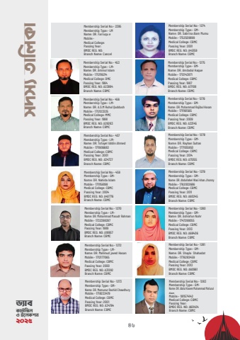 46m`m%u00a8 ZvwjKvW%u00a8veKvDw%u00ddj I B%u2021jKkb 2025Membership Serial No:- 2395Membership Type:- LMName: DR. Farruqu eMobile:- Medical College: Passing Year: BMDC REG. NO: Branch Name: CancelMembership Serial No:- 453Membership Type:- LMName: DR. Aminul IslamMobile:- 1712116214Medical College: DMCPassing Year: 1994BMDC REG. NO: A23884Branch Name: CBMCMembership Serial No:- 456Membership Type:- LMName: DR. A.S.M Ruhul QuddushMobile:- 1712123225Medical College: MMCPassing Year: 1998BMDC REG. NO: A29283Branch Name: CBMCMembership Serial No:- 457Membership Type:- LMName: DR. Tofayel Uddin AhmedMobile:- 1711906682Medical College: CBMCPassing Year: 2001BMDC REG. NO: A34737Branch Name: CBMCMembership Serial No:- 459Membership Type:- GMName: DR. Nahida IslamMobile:- 1711156198Medical College: CBMCPassing Year: 2004BMDC REG. NO: A40776Branch Name: CBMCMembership Serial No:- 1270Membership Type:- LMName: DR. Mohammad Masudr RahmanMobile:- 1732398297Medical College: CBMCPassing Year: 1989BMDC REG. NO: A18957Branch Name: CBMCMembership Serial No:- 1272Membership Type:- LMName: DR. Mahmud javed HasanMobile:- 1712177065Medical College: CBMCPassing Year: 2000BMDC REG. NO: A31292Branch Name: CBMCMembership Serial No:- 1273Membership Type:- GMName: DR. Mamunur Rashid ChowdhuryMobile:- 1718232479Medical College: CBMCPassing Year: 2001BMDC REG. NO: A34764Branch Name: CBMCMembership Serial No:- 1274Membership Type:- GMName: DR. Sabrina Alam MumuMobile:- 1752509899Medical College: CBMCPassing Year: 2001BMDC REG. NO: A45159Branch Name: CBMCMembership Serial No:- 1275Membership Type:- GMName: DR. Amdadul HaqueMobile:- 1712143871Medical College: CBMCPassing Year: 1987BMDC REG. NO: A17108Branch Name: CBMCMembership Serial No:- 1276Membership Type:- GMName: DR. Mohammad Rajibul HasanMobile:- 1711161565Medical College: CBMCPassing Year: 2009BMDC REG. NO: A33145Branch Name: CBMCMembership Serial No:- 1278Membership Type:- GMName: DR. Rayhan SultanMobile:- 1771105950Medical College: CBMCPassing Year: 2014BMDC REG. NO: A75155Branch Name: CBMCMembership Serial No:- 1279Membership Type:- GMName: DR. Abdullahel Wasi khan JhonnyMobile:- 1762002686Medical College: CBMCPassing Year: 2011BMDC REG. NO: A60245Branch Name: CBMCMembership Serial No:- 1280Membership Type:- GMName: DR. Ashrafun NahrMobile:- 1747299055Medical College: CBMCPassing Year: 2013BMDC REG. NO: A68406Branch Name: CBMCMembership Serial No:- 1281Membership Type:- GMName: DR. Shayla ShahadatMobile:- 1776282459Medical College: CBMCPassing Year: 2013BMDC REG. NO: A60961Branch Name: CBMCMembership Serial No:- 1283Membership Type:- GMName: DR. Abdul Kasem Muhammad Mafuzul AlamMobile:- 1911574142Medical College: CBMCPassing Year: BMDC REG. NO: A60404Branch Name: CBMC