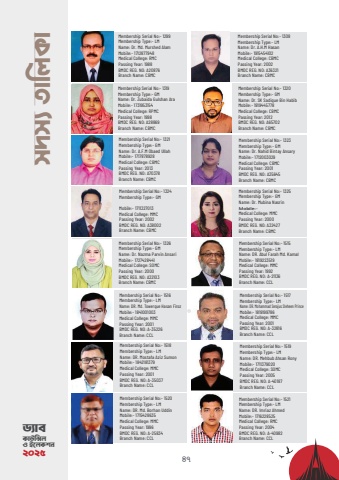 47m`m%u00a8 ZvwjKvW%u00a8veKvDw%u00ddj I B%u2021jKkb 2025Membership Serial No:- 1299Membership Type:- LMName: Dr. Md. Murshed AlamMobile:- 1712877948Medical College: RMCPassing Year: 1988BMDC REG. NO: A20876Branch Name: CBMCMembership Serial No:- 1308Membership Type:- LMName: Dr. A.H.M HasanMobile:- 1915454102Medical College: CBMCPassing Year: 2002BMDC REG. NO: A36321Branch Name: CBMCMembership Serial No:- 1319Membership Type:- GMName: Dr. Zubaida Gulshan AraMobile:- 1731953154Medical College: RPMCPassing Year: 1998BMDC REG. NO: A28869Branch Name: CBMCMembership Serial No:- 1320Membership Type:- GMName: Dr. SK Sadique Bin HabibMobile:- 1919445778Medical College: CBMCPassing Year: 2012BMDC REG. NO: A65702Branch Name: CBMCMembership Serial No:- 1321Membership Type:- GMName: Dr. A.F.M Obaed UllahMobile:- 1717878928Medical College: CBMCPassing Year: 2013BMDC REG. NO: A70378Branch Name: CBMCMembership Serial No:- 1323Membership Type:- GMName: Dr. Nahid Bintay AnsaryMobile:- 1712003029Medical College: CBMCPassing Year: 2001BMDC REG. NO: A35645Branch Name: CBMCMembership Serial No:- 1324Membership Type:- GMMobile:- 1711327013Medical College: MMCPassing Year: 2002BMDC REG. NO: A38002Branch Name: CBMCMembership Serial No:- 1325Membership Type:- GMName: Dr. Mubina NasrinMobile:- Medical College: MMCPassing Year: 2000BMDC REG. NO: A32427Branch Name: CBMCMembership Serial No:- 1326Membership Type:- GMName: Dr. Nazma Parvin AnsariMobile:- 1727428441Medical College: SOMCPassing Year: 2000BMDC REG. NO: A32103Branch Name: CBMCMembership Serial No:- 1515Membership Type:- LMName: DR. Abul Farah Md. KamalMobile:- 1819223519Medical College: MMCPassing Year: 1992BMDC REG. NO: A-21136Branch Name: CCLMembership Serial No:- 1516Membership Type:- LMName: DR. Md. Towerque Hasan FirozMobile:- 1841001003Medical College: MMCPassing Year: 2001BMDC REG. NO: A-35226Branch Name: CCLMembership Serial No:- 1517Membership Type:- LMName: DR. Mohammad Serajus Sleheen PrinceMobile:- 1819199786Medical College: MMCPassing Year: 2001BMDC REG. NO: A-32816Branch Name: CCLMembership Serial No:- 1518Membership Type:- LMName: DR. Mostafa Aziz SumonMobile:- 1842181379Medical College: MMCPassing Year: 2001BMDC REG. NO: A-35037Branch Name: CCLMembership Serial No:- 1519Membership Type:- LMName: DR. Mehbub Ahsan RonyMobile:- 1711379020Medical College: SOMCPassing Year: 2005BMDC REG. NO: A-40187Branch Name: CCLMembership Serial No:- 1520Membership Type:- LMName: DR. Md. Borhan UddinMobile:- 1715428635Medical College: MMCPassing Year: 1996BMDC REG. NO: A-25834Branch Name: CCLMembership Serial No:- 1521Membership Type:- LMName: DR. Imriaz AhmedMobile:- 1716228525Medical College: RMCPassing Year: 2004BMDC REG. NO: A-40982Branch Name: CCL