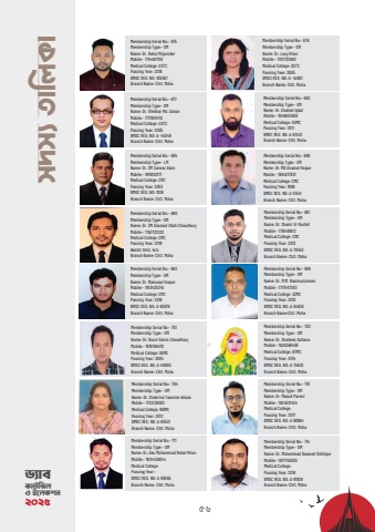 56m`m%u00a8 ZvwjKvW%u00a8veKvDw%u00ddj I B%u2021jKkb 2025Membership Serial No:- 675Membership Type:- GMName: Dr. Rahul MojumdarMobile:- 1714491700Medical College: USTCPassing Year: 2018BMDC REG. NO: 109367Branch Name: Chtt. MohaMembership Serial No:- 676Membership Type:- GMName: Dr. Lucy KhanMobile:- 1701732590Medical College: USTCPassing Year: 2005BMDC REG. NO: A- 42601Branch Name: Chtt. MohaMembership Serial No:- 677Membership Type:- GMName: Dr. Iftekhar Md. AdnanMobile:- 1717804110Medical College: USTCPassing Year: 2005BMDC REG. NO: A- 45349Branch Name: Chtt. MohaMembership Serial No:- 683Membership Type:- GMName: Dr. Shahed IqbalMobile:- 1846934909Medical College: SOMCPassing Year: 2011BMDC REG. NO: A-61422Branch Name: Chtt. MohaMembership Serial No:- 685Membership Type:- LMName: Dr. SM Sarwar AlamMobile:- 1919102171Medical College: CMCPassing Year: 2003BMDC REG. NO: 1926Branch Name: Chtt. MohaMembership Serial No:- 689Membership Type:- GMName: Dr. MD Anamul HoqueMobile:- 1864217831Medical College: CMCPassing Year: 1998BMDC REG. NO: A-51541Branch Name: Chtt. MohaMembership Serial No:- 690Membership Type:- GMName: Dr. SM Ahamad Ullah ChowdhuryMobile:- 1763722222Medical College: CMCPassing Year: 2018BMDC REG. NO:Branch Name: Chtt. MohaMembership Serial No:- 691Membership Type:- GMName: Dr. Shakir Ur RashidMobile:- 1716491613Medical College: CMCPassing Year: 2013BMDC REG. NO: A-70452Branch Name: Chtt. MohaMembership Serial No:- 692Membership Type:- GMName: Dr. Mamunul HoqueMobile:- 1913420345Medical College: CMCPassing Year: 2016BMDC REG. NO: A-85976Branch Name: Chtt. MohaMembership Serial No:- 699Membership Type:- GMName: Dr. M.M. NasimuzzamanMobile:- 1717547283Medical College: SZMCPassing Year: 2010BMDC REG. NO: A-54936Branch Name:Chtt. MohaMembership Serial No:- 701Membership Type:- GMName: Dr. Nurul Karim ChowdhuryMobile:- 1818156470Medical College: SBMCPassing Year: 2004BMDC REG. NO: A-40900Branch Name: Chtt. MohaMembership Serial No:- 703Membership Type:- GMName: Dr. Shaheen SultanaMobile:- 1626368458Medical College: BTMCPassing Year: 2014BMDC REG. NO: A-74830Branch Name: Chtt. MohaMembership Serial No:- 704Membership Type:- GMName: Dr. Shabrina Yasmine AdanaMobile:- 1712236502Medical College: NBMCPassing Year: 2012BMDC REG. NO: A-65521Branch Name: Chtt. MohaMembership Serial No:- 710Membership Type:- GMName: Dr. Masud ParvezMobile:- 1624512424Medical College: Passing Year: 2017BMDC REG. NO: A-90964Branch Name: Chtt. MohaMembership Serial No:- 711Membership Type:- GMName: Dr. Abu Mohammad Rahat KhanMobile:- 1924436044Medical College: PassingYear:BMDC REG. NO: A-88265Branch Name: Chtt. MohaMembership Serial No:- 714Membership Type:- GMName: Dr. Mohammad Dawood SiddiqueMobile:- 1917745805Medical College: Passing Year: 2016BMDC REG. NO: A-81929Branch Name: Chtt. Moha