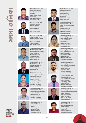65m`m%u00a8 ZvwjKvW%u00a8veKvDw%u00ddj I B%u2021jKkb 2025Membership Serial No:- 857Membership Type:- GMName: Dr.Md. Abu Hanif SmratMobile:- Medical College: JRRMCPassing Year: BMDC REG. NO: A-87310Branch Name: CuMCMembership Serial No:- 858Membership Type:- GMName: Dr.Tofayel AhamedMobile:- 1612623232Medical College: CEMCPassing Year: BMDC REG. NO: A-91121Branch Name: CuMCMembership Serial No:- 859Membership Type:- GMName: Dr. Lalon Mia Mobile:- 1923949656Medical College: JMCPassing Year: 2016BMDC REG. NO: A-84326Branch Name: CuMCMembership Serial No:- 876Membership Type:- GMName: Dr. Md. Ekram Hossain Mobile:- Medical College: EMCPassing Year: 2018BMDC REG. NO: A-87255Branch Name: CuMCMembership Serial No:- 1815Membership Type:- LMName: Dr.Md.Shafiqur RahmanMobile:- 1716120930Medical College: CUMCPassing Year: 2005BMDC REG. NO: A 44150Branch Name: CuMCMembership Serial No:- 1817Membership Type:- LMName: Dr. Farhan BegumMobile:- 1718548567Medical College: Passing Year: 2008BMDC REG. NO: A 29795Branch Name: CuMCMembership Serial No:- 2528Membership Type:- GMName: DR. MD. Sakhawat UllahMobile:- 1711227725Medical College: CMCPassing Year: 1985BMDC REG. NO: A-15111Branch Name: CuMCMembership Serial No:- 596Membership Type:- LMName: DR. Md Shahgalal RiadMobile:- 1728128469Medical College: CEMCPassing Year: 2011BMDC REG. NO: A 58660Branch Name: Cumil. DistMembership Serial No:- 765Membership Type:- LMName: Dr.MD Liaquat AliMobile:- 1711387864Medical College: SOMCPassing Year: 1982BMDC REG. NO: A 12499Branch Name: Cumil. DistMembership Serial No:- 767Membership Type:- LMName: Dr.SM Mostafizur RahmanMobile:- 1763637474Medical College: DJMCPassing Year: 2005BMDC REG. NO: A 44857Branch Name: Cumil. DistMembership Serial No:- 768Membership Type:- LMName: Dr.Sanjida AfrozMobile:- 1938277511Medical College: DJMCPassing Year: 2005BMDC REG. NO: A 44858Branch Name: Cumil. DistMembership Serial No:- 770Membership Type:- LMName: Dr.GRM Zihadul Islam RiazMobile:- 1717806656Medical College: CUMCPassing Year: 2010BMDC REG. NO: A 55072Branch Name: Cumil. DistMembership Serial No:- 772Membership Type:- LMName: Dr.Khaja Morshed Mahmud TusherMobile:- 1716242536Medical College: CEMCPassing Year: 2012BMDC REG. NO: A 64841Branch Name: Cumil. DistMembership Serial No:- 773Membership Type:- LMName: Dr.Muhammad Alamgir Hussain bhuiyanMobile:- 1925349767Medical College: SOMCPassing Year: 2007BMDC REG. NO: A 47585Branch Name: Cumil. DistMembership Serial No:- 775Membership Type:- LMName: Dr.Md Aab Uddin BhuyanMobile:- Medical College: SOMCPassing Year: 2004BMDC REG. NO: A 41187Branch Name: Cumil. DistMembership Serial No:- 776Membership Type:- LMName: Dr.Md Zakaria MahmudMobile:- 1732633037Medical College: SSMCPassing Year: BMDC REG. NO: A 41497Branch Name: Cumil. Dist