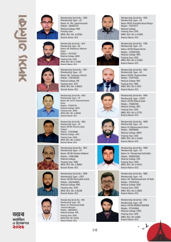 84m`m%u00a8 ZvwjKvMembership Serial No:- 1392Membership Type:- LMName: DR.Md. Muntahid Ahsan BhuiyaMobile:- 1712121277Medical College: Passing Year: 2010BMDC REG. NO: A-57208Branch Name: DCSMembership Serial No:- 1390Membership Type:- LMName: Dr. Md. Javed HossainMobile:- 1914857701Medical College: MMCPassing Year: BMDC REG. NO: A-50194Branch Name: DCSMembership Serial No:- 1796Membership Type:- LMName: DR.Md.Masud KarimMobile:- 1720097559Medical College: MMCPassing Year: 2001BMDC REG. NO: A 33360Branch Name: DCSMembership Serial No:- 1672Membership Type:- GMName: DR. Mahafuzur Rahman SujonMobile:- 1711717397Medical College: SBMCPassing Year: 2015BMDC REG. NO: A-77569Branch Name: DCSMembership Serial No:- 1801Membership Type:- LMName: DR.Md. Shamiul AlamMobile:- 1712174052Medical College: RMCPassing Year: 1999BMDC REG. NO: A 31511Branch Name: DCSMembership Serial No:- 1797Membership Type:- LMName: DR. Tamanna TasnimMobile:- 1752363393Medical College: IMCPassing Year: 2017BMDC REG. NO: A 89933Branch Name: DCSMembership Serial No:- 1804Membership Type:- LM757Name: DR.Md Didarul AlamMobile:- 1716618762Medical College: DMCPassing Year: 2001BMDC REG. NO: A 27715Branch Name: DCSMembership Serial No:- 1803Membership Type:- LMName: DR. A.K.M. Shamsuzzaman RanaMobile:- 1715013714Medical College: SOMCPassing Year: 2002BMDC REG. NO: A 39830Branch Name: DCSMembership Serial No:- 1806Membership Type:- LMName: Dr.Mohammad Al AminMobile:- 1819118009Medical College: DNMCPassing Year: 2001BMDC REG. NO: A 34494Branch Name: DCSMembership Serial No:- 1805Membership Type:- LMName: DR.Md. Monirul Islam ChayonMobile:- 1713035699Medical College: JIMCPassing Year: 2005BMDC REG. NO: A 42857Branch Name: DCSMembership Serial No:- 1808Membership Type:- LMName: Dr. Mohammad SaifuddinMobile:- 1818670090Medical College: CMCPassing Year: 2004BMDC REG. NO: A 41434Branch Name: DCSMembership Serial No:- 1807Membership Type:- LMName: DR.Md Ghulam RabbaniMobile:- 1711623966Medical College: Passing Year: 1998BMDC REG. NO: A 18606Branch Name: DCSMembership Serial No:- 1960Membership Type:- LMName: DR. Mohammad Amir Ul MulkMobile:- 1712015425Medical College: DjMCPassing Year: 2004BMDC REG. NO: A 39951Branch Name: DCSMembership Serial No:- 1809Membership Type:- LM70Name: DR.KM Shorfuddin AshikMobile:- 1552408001Medical College: MMCPassing Year: 2010BMDC REG. NO: A 55295Branch Name: DCSMembership Serial No:- 2116Membership Type:- GMName: DR.MD.AMINUR RAHMANMobile:- 1717451906Medical College: SZMCPassing Year: 2010BMDC REG. NO: 54818Branch Name: DCSMembership Serial No:- 2110Membership Type:- GMName: Dr. Mohammad Rajib Hossain BhuiyanMobile:- 1687679413Medical College: MMCPassing Year: 2016BMDC REG. NO: 84745Branch Name: DCSW%u00a8veKvDw%u00ddj I B%u2021jKkb 2025