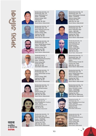 91m`m%u00a8 ZvwjKvMembership Serial No:- 66Membership Type:- GMName: DR.MD Anowar ShahadatMobile:- 1743138779Medical College: DDMCPassing Year: 2001BMDC REG. NO: 1462Branch Name: dhaka dentalMembership Serial No:- 62Membership Type:- GMName: DR.MD Asiful bariMobile:- 1711202868Medical College: DDMCPassing Year: BMDC REG. NO: 1862Branch Name: dhaka dentalMembership Serial No:- 68 Membership Type:- GMName: DR.MD Noor NabiMobile:- 1819743181Medical College: DDMCPassing Year: 2003BMDC REG. NO: 1863Branch Name: dhaka dentalMembership Serial No:- 67Membership Type:- GMName: DR.Binay kumar dasMobile:- 1711972674Medical College: DDMCPassing Year: 1994BMDC REG. NO: 814Branch Name: dhaka dentalMembership Serial No:- 70Membership Type:- GMName: DR.Muhammad Showkat Hossain Mobile:- 1714208762Medical College: DDMCPassing Year: 2001BMDC REG. NO: 1555Branch Name: dhaka dentalMembership Serial No:- 69Membership Type:- GMName: DR.ANM Nazmul Hoque Mobile:- 1712242260Medical College: DDMCPassing Year: 1994BMDC REG. NO: 815Branch Name: dhaka dentalMembership Serial No:- 72 Membership Type:- GMName: DR.Abdul GafurMobile:- Medical College: Pioneer DC Passing Year: 2000BMDC REG. NO: 1208Branch Name: dhaka dentalMembership Serial No:- 71Membership Type:- GMName: DR.Hasan Mohammad Rizvi Mobile:- 1703797339Medical College: DDMCPassing Year: 2000BMDC REG. NO: 1285Branch Name: dhaka dentalMembership Serial No:- 74 Membership Type:- GMName: DR.Rafia Akter Rima Mobile:- 1731660097Medical College: Pioneer DC Passing Year: 2001BMDC REG. NO: 1755Branch Name: dhaka dentalMembership Serial No:- 73Membership Type:- GMName: DR.MD Haider ali khan Mobile:- Medical College: DDMCPassing Year: 1996BMDC REG. NO: 917Branch Name: dhaka dentalMembership Serial No:- 76 Membership Type:- GMName: DR.Sultan ul ArefinMobile:- 1675226686Medical College: BDCPassing Year: 2017BMDC REG. NO: 10986 temp Branch Name: dhaka dentalMembership Serial No:- 75 Membership Type:- GMName: DR.KamrunnaharMobile:- Medical College: CDCPassing Year: 2004BMDC REG. NO: 2062Branch Name: dhaka dentalMembership Serial No:- 78Membership Type:- GMName: DR.Chowdhury Hasanul Kayes Mobile:- 1670545272Medical College: Marks dental cPassing Year: 2016BMDC REG. NO: 8331Branch Name: dhaka dentalMembership Serial No:- 77Membership Type:- GMName: DR.Hasiba Akhter Chowdhury Mobile:- 155211126Medical College: Pioneer DCPassing Year: 2001BMDC REG. NO: 1420Branch Name: dhaka dentalMembership Serial No:- 80Membership Type:- GMName: DR.Mohammad Zakaria Chowdhury Mobile:- 1975000400Medical College: DDMCPassing Year: 2005BMDC REG. NO: 2576Branch Name: dhaka dentalMembership Serial No:- 79 Membership Type:- GMName: DR.Ismot ARA Kabery Mobile:- 1716091900Medical College: CDCPassing Year: 2004BMDC REG. NO: 2070Branch Name: dhaka dentalW%u00a8veKvDw%u00ddj I B%u2021jKkb 2025